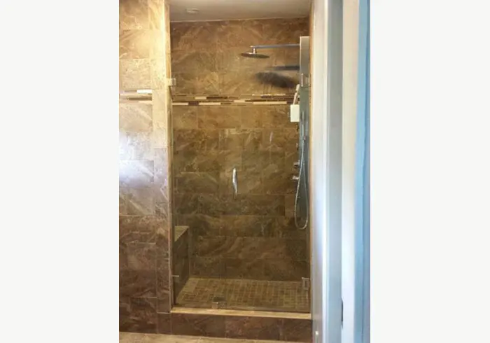 We installed a frameless custom steam enclosure in University City, CA during a residential glazing project.